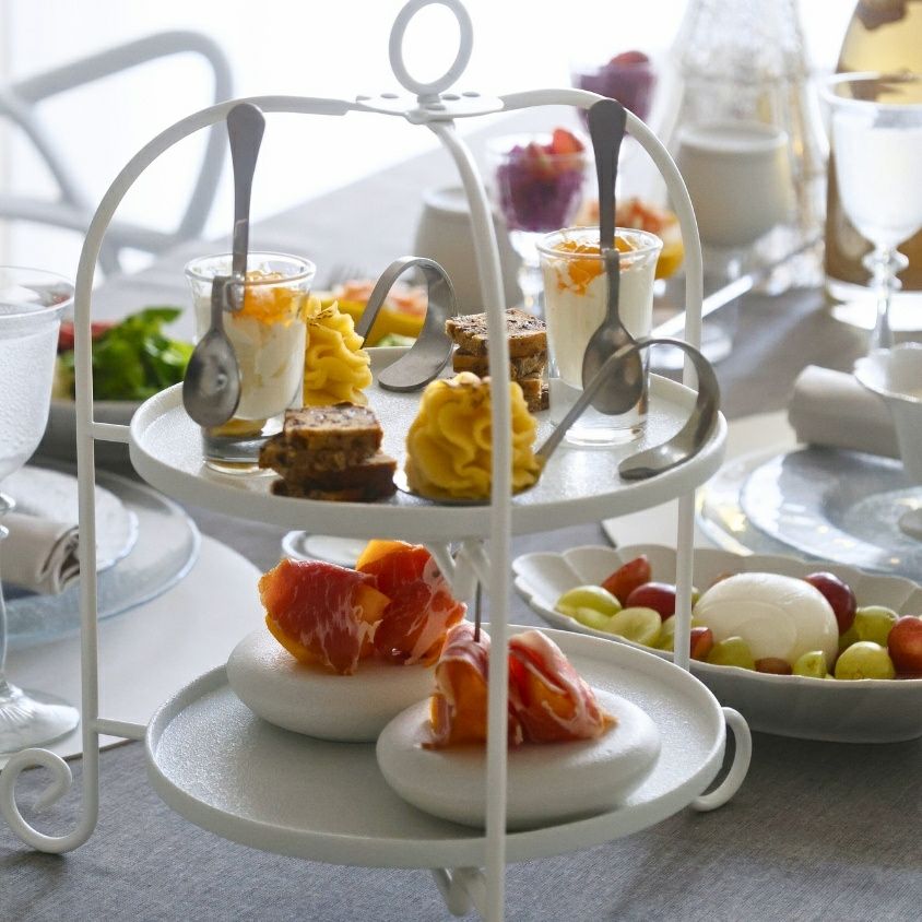 アイアン製 折り畳み2段ケーキスタンド 黒白(白)
