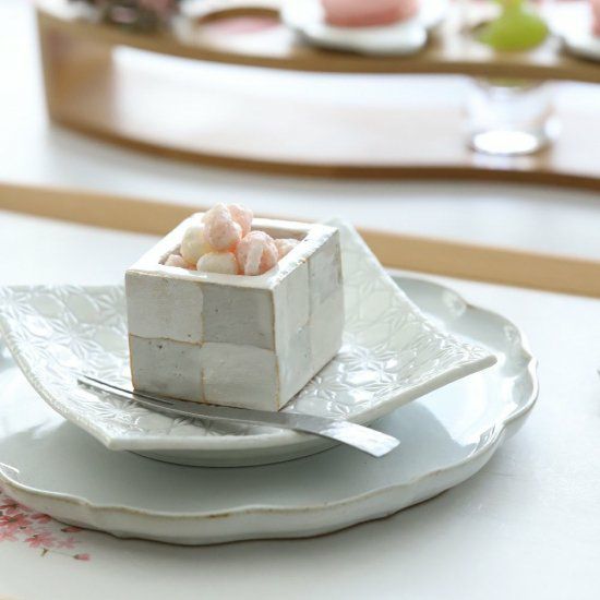 銀彩を使った市松模様の小付