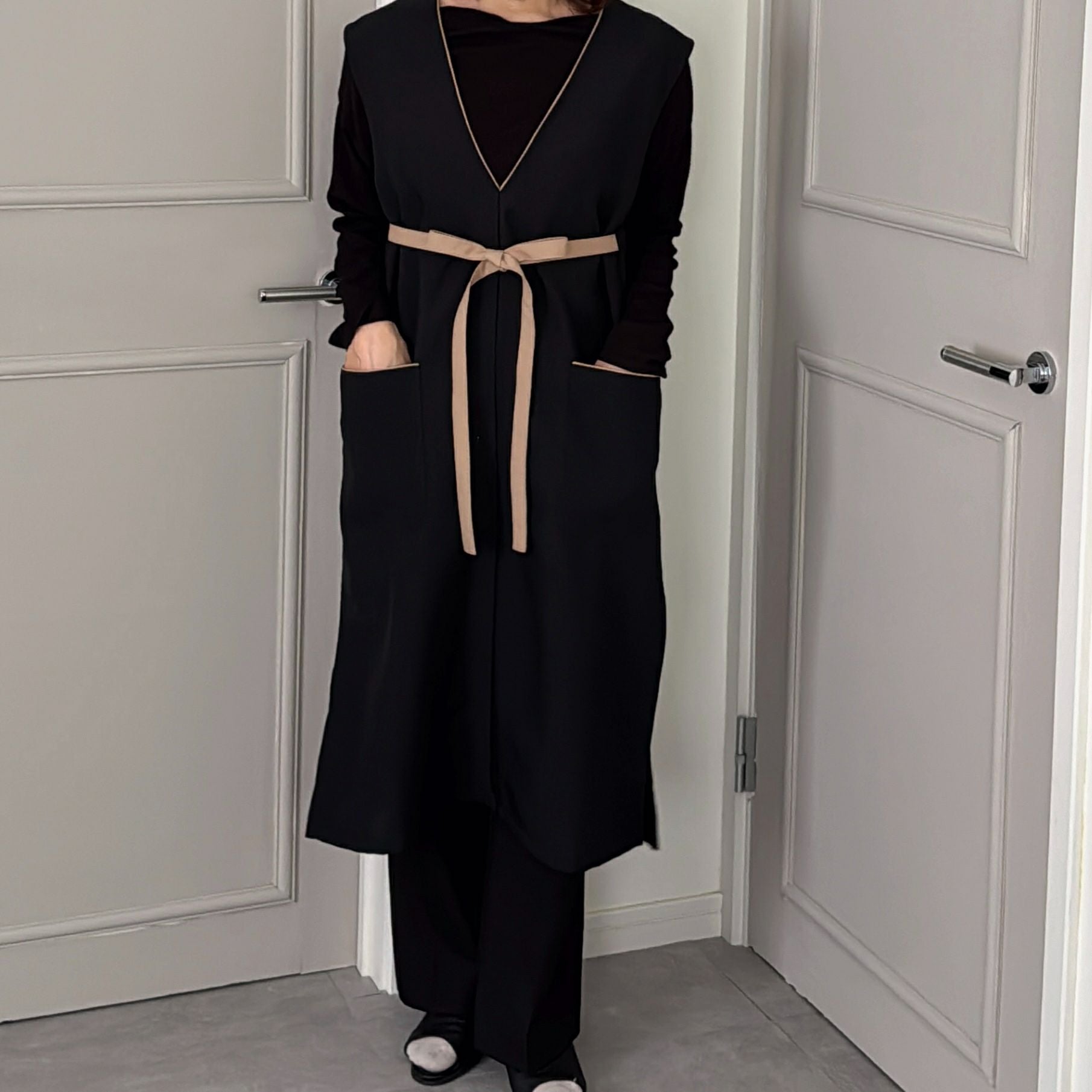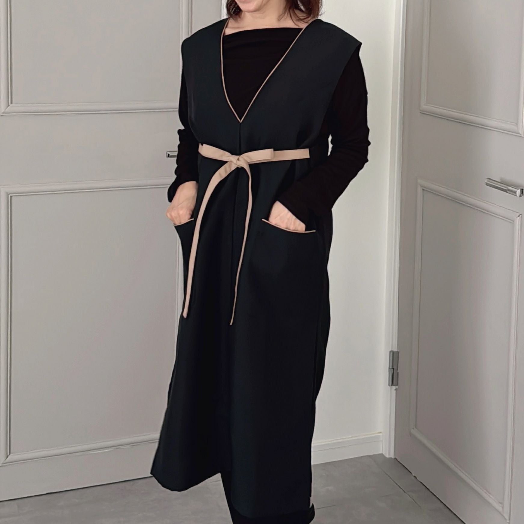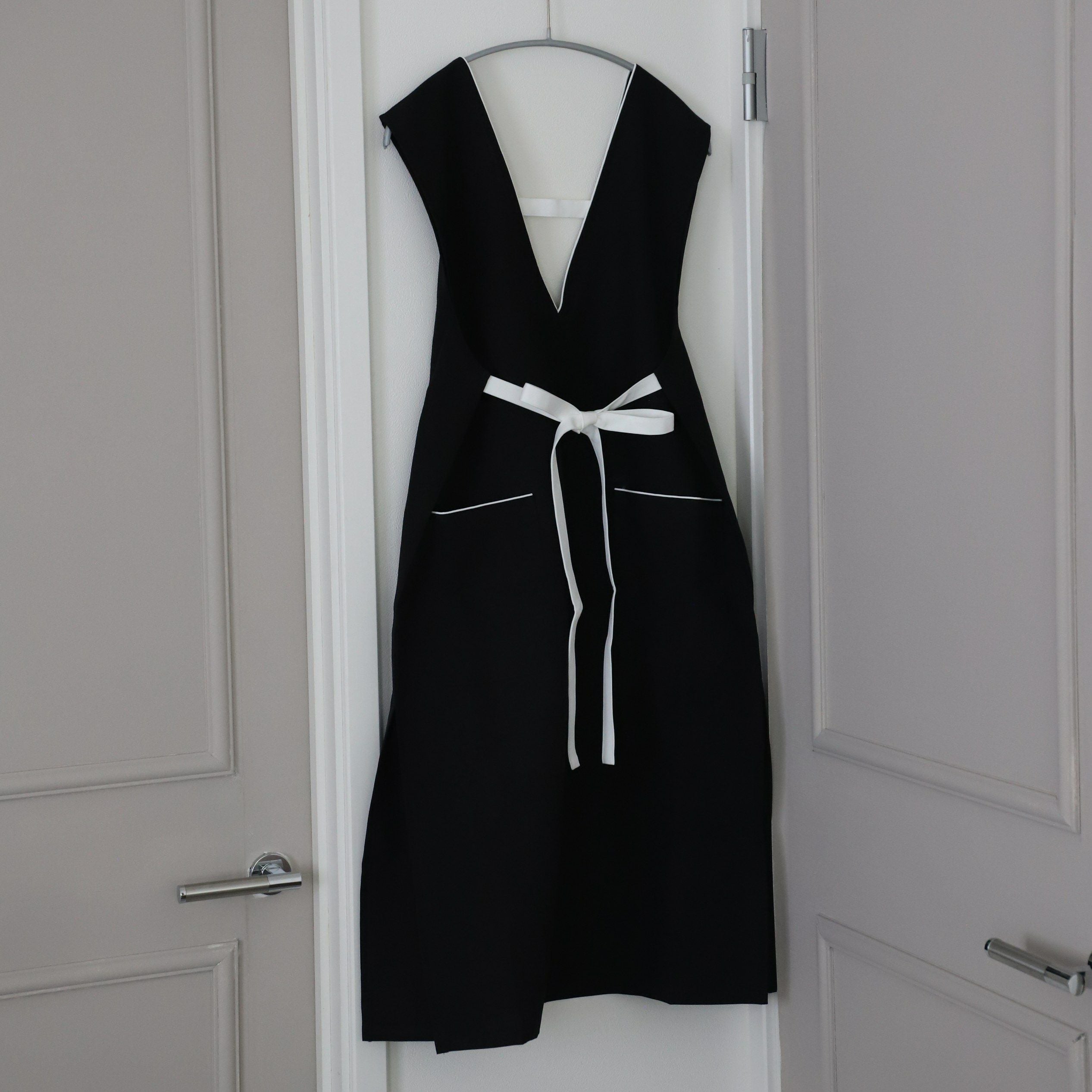 おしゃれエプロン ワンピースエプロン ブラック|M苦楽園オリジナル|
