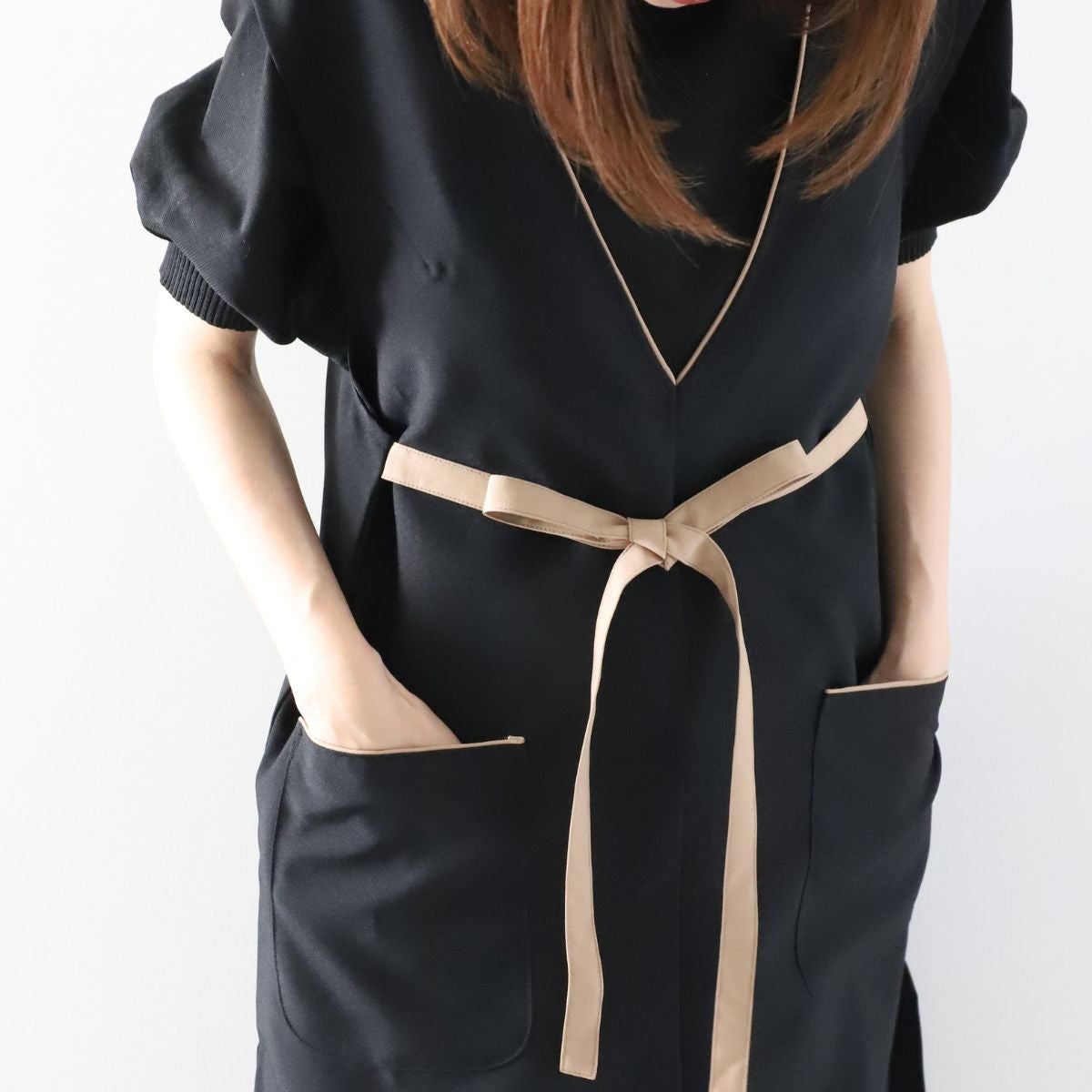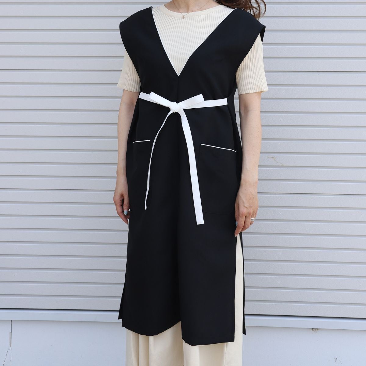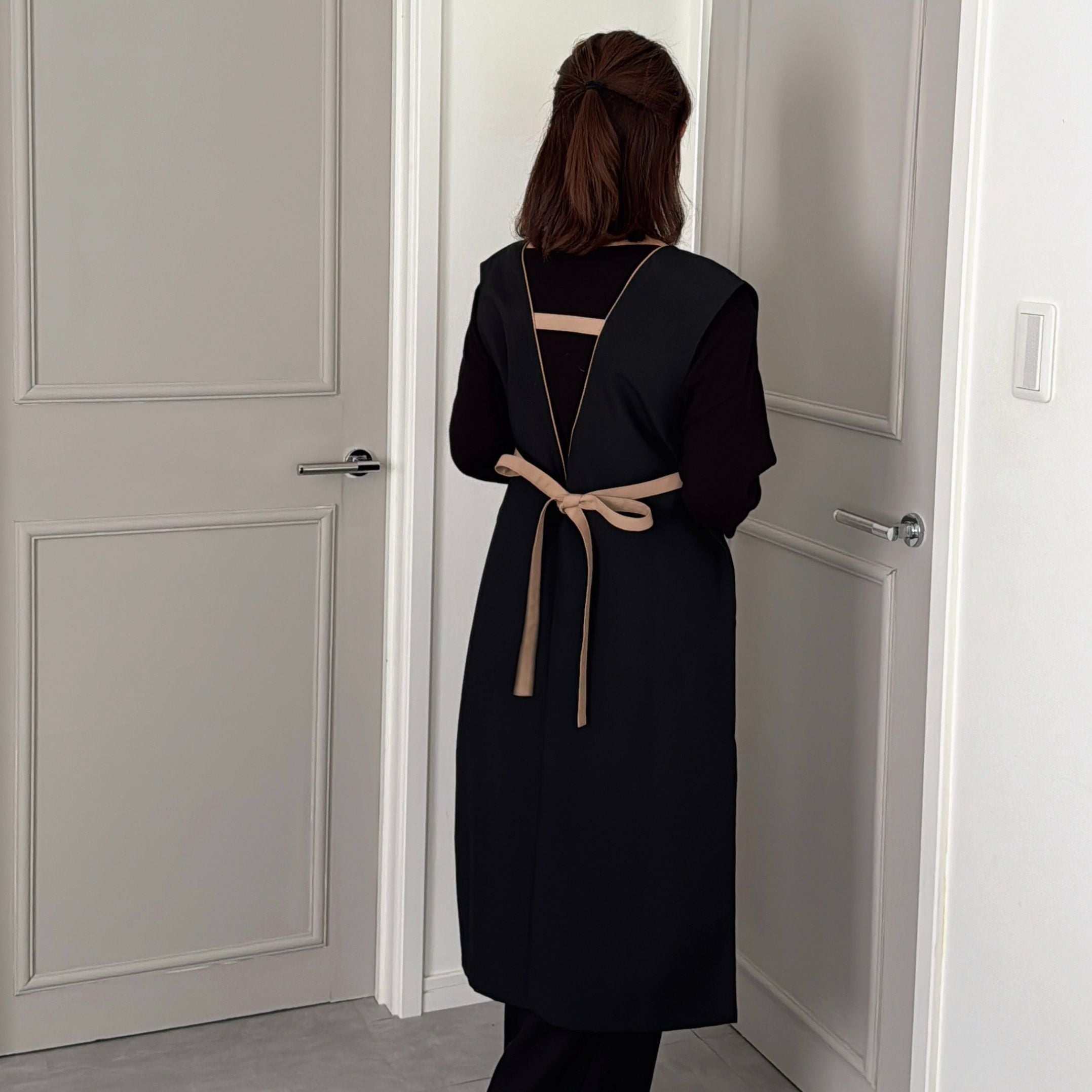 ワンピースのように着用できるエプロン