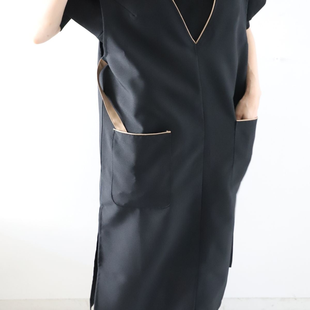 エステエプロン用として購入致しました。 水仕事をして汚れても、さっと拭けば汚れも落ちやすく、とても着心地が良いです♪ ワンピース感覚で着れるので、体型カバーも出来てとても嬉しいです。