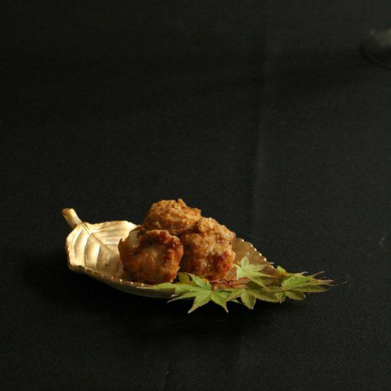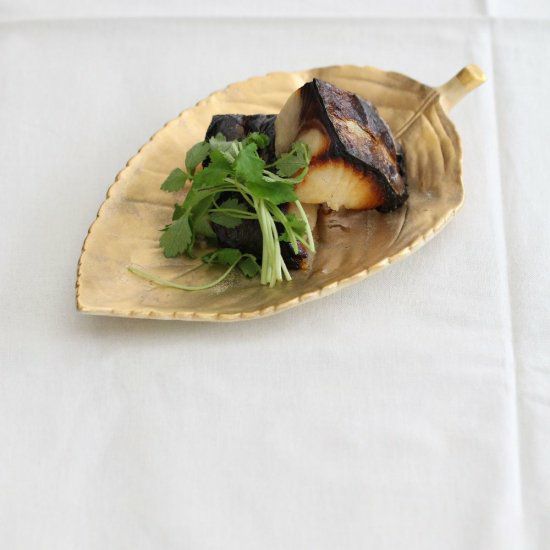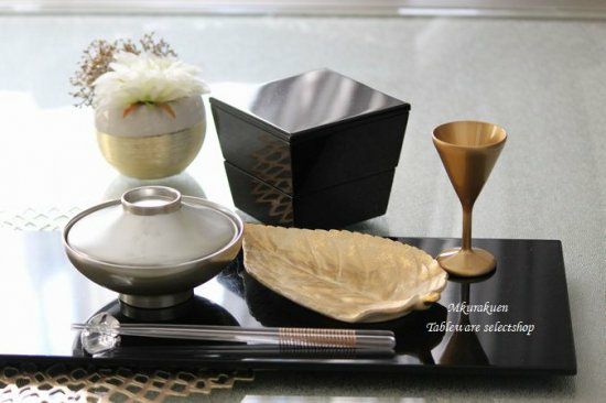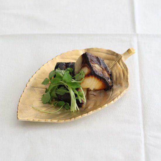 葉の造形に金色を使った枯れ葉のような色合いが魅力な高級感のある和皿です。