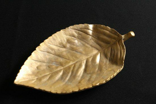 美濃焼 ゴールド葉型焼き物皿 21.6cm