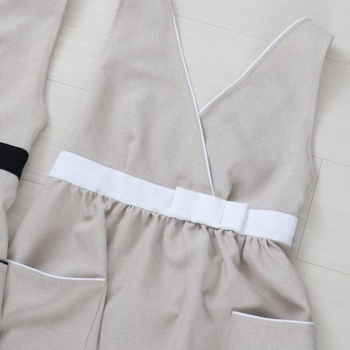 おしゃれエプロン カシュクールパイピングリボン エクリュ|M苦楽園オリジナル|
