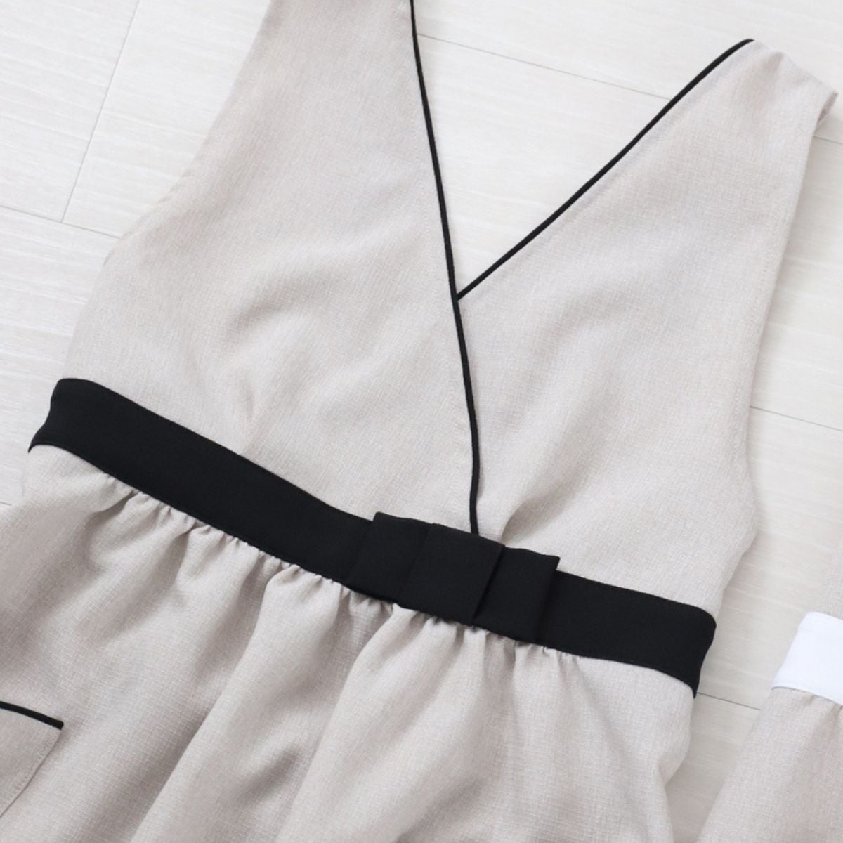 ブラックのパイピングとリボンがアクセントで