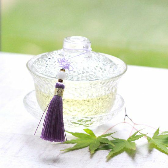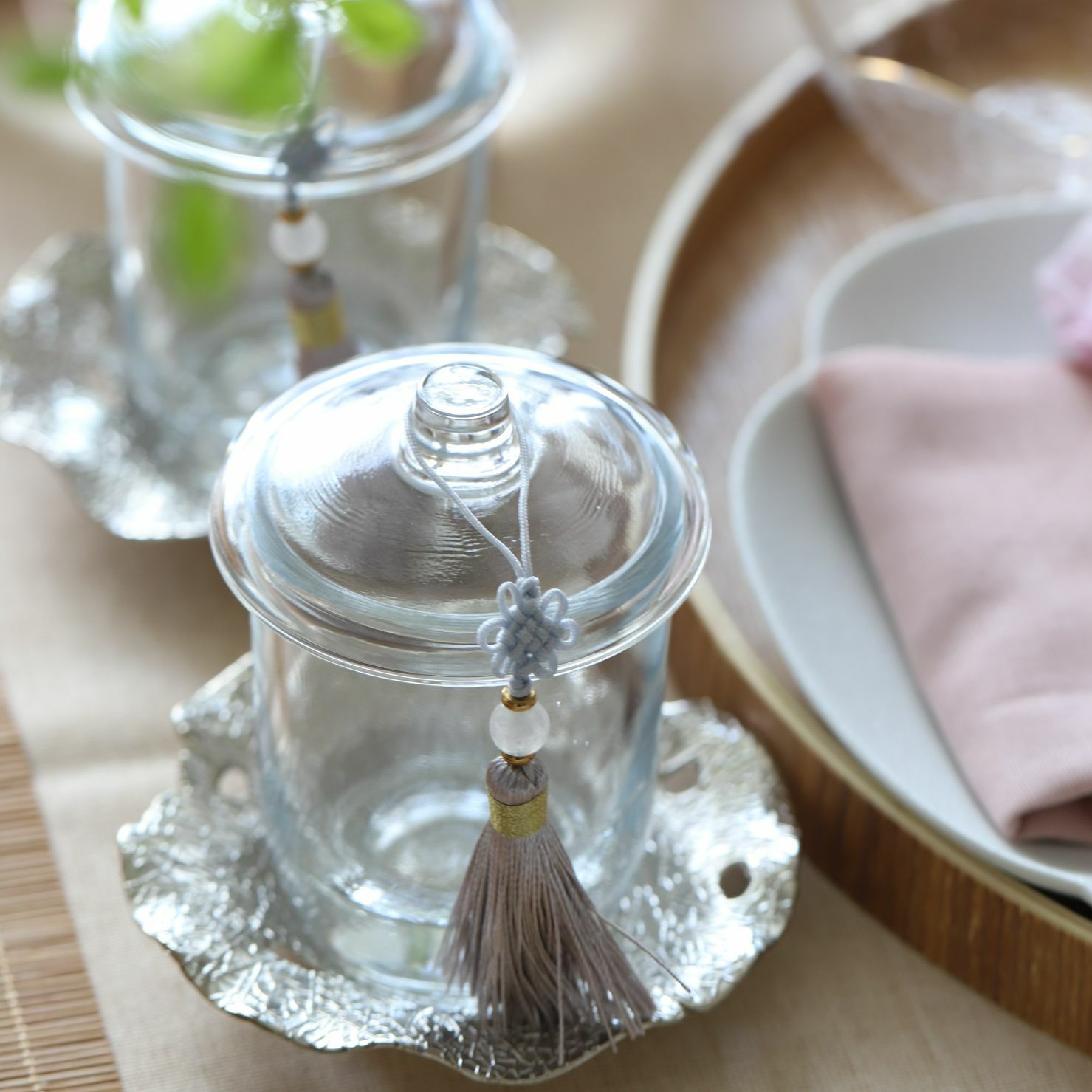 耐熱ガラス製 ソーサー付き蓋碗 茶器 モダンカットガラス