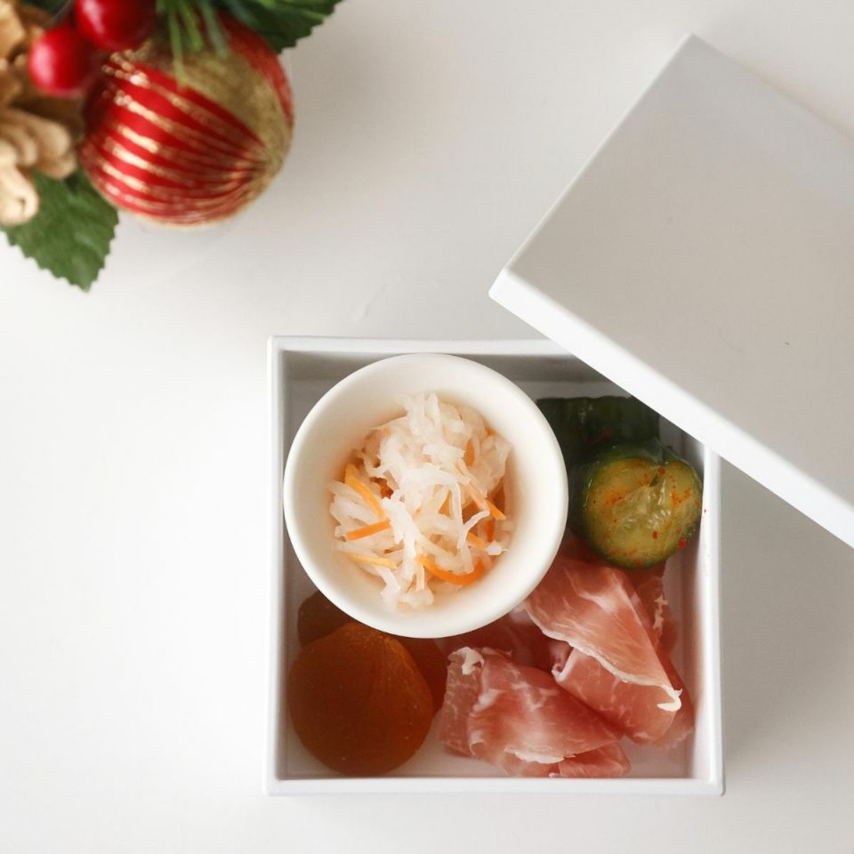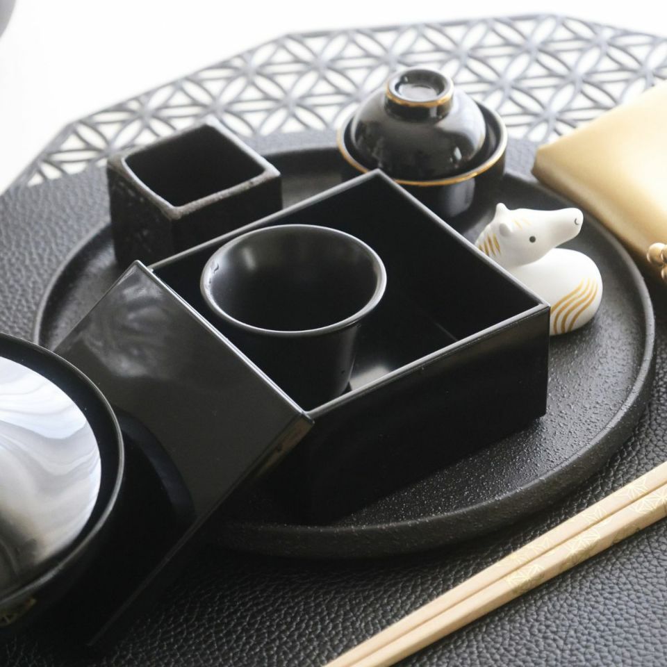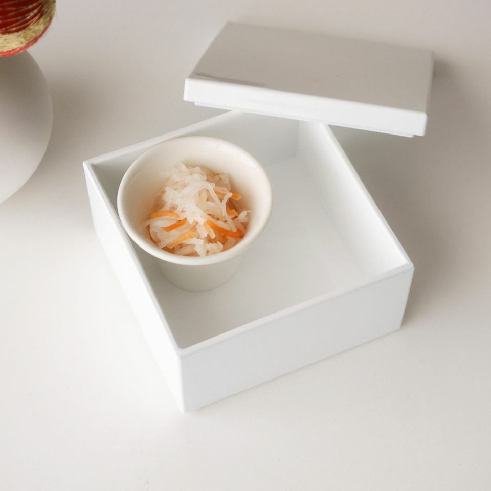 ミニ正角2段お重ボックス 黒白 9cmの中に入れて