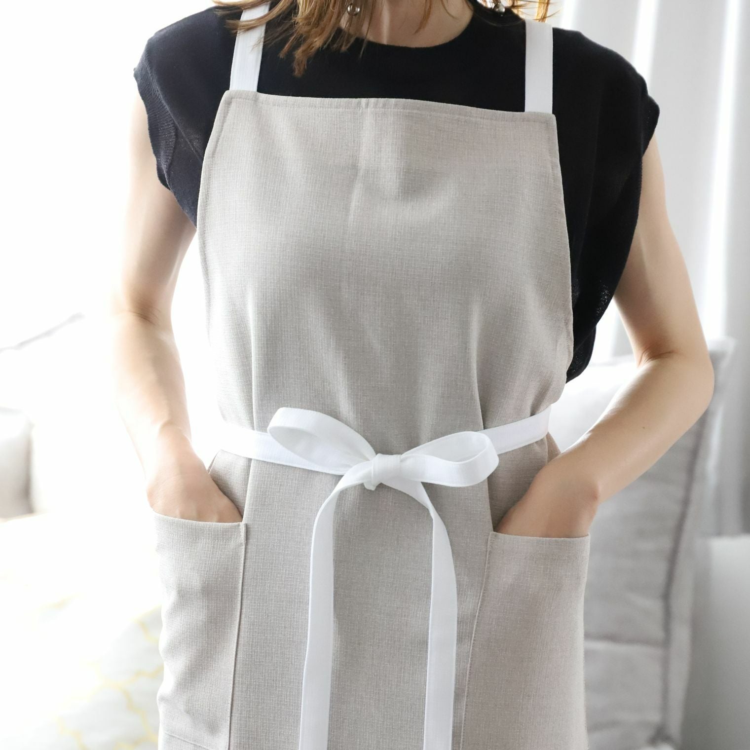 「おしゃれエプロン シンプル エクリュ」