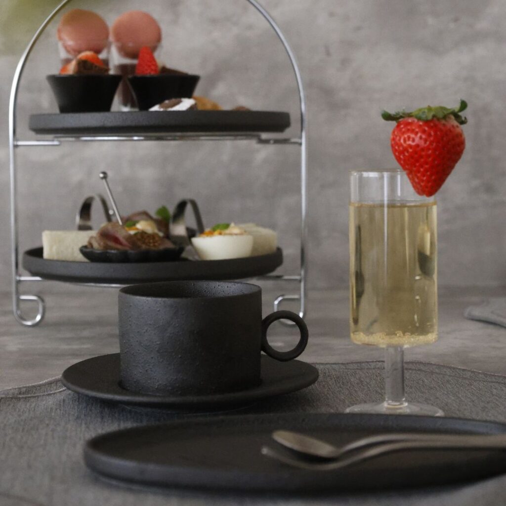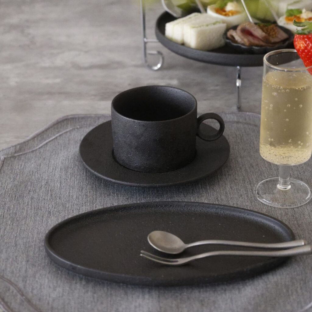 チョコレートや焼き菓子の色合いを美しく見せてくれるマットな黒の器。