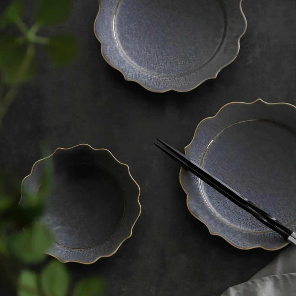 少し厚みがあり縁や釉薬に個性が光るデザイン。テーブルに置くだけで空気感まで変わるような存在感があります。少し色のあるプレートを1枚加えることで、テーブルに奥行きやリズムが生まれます。