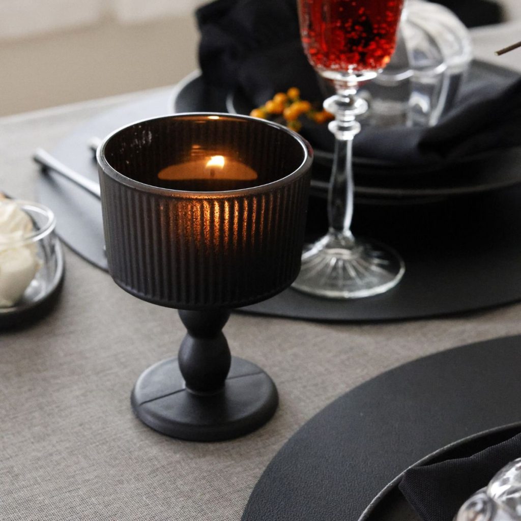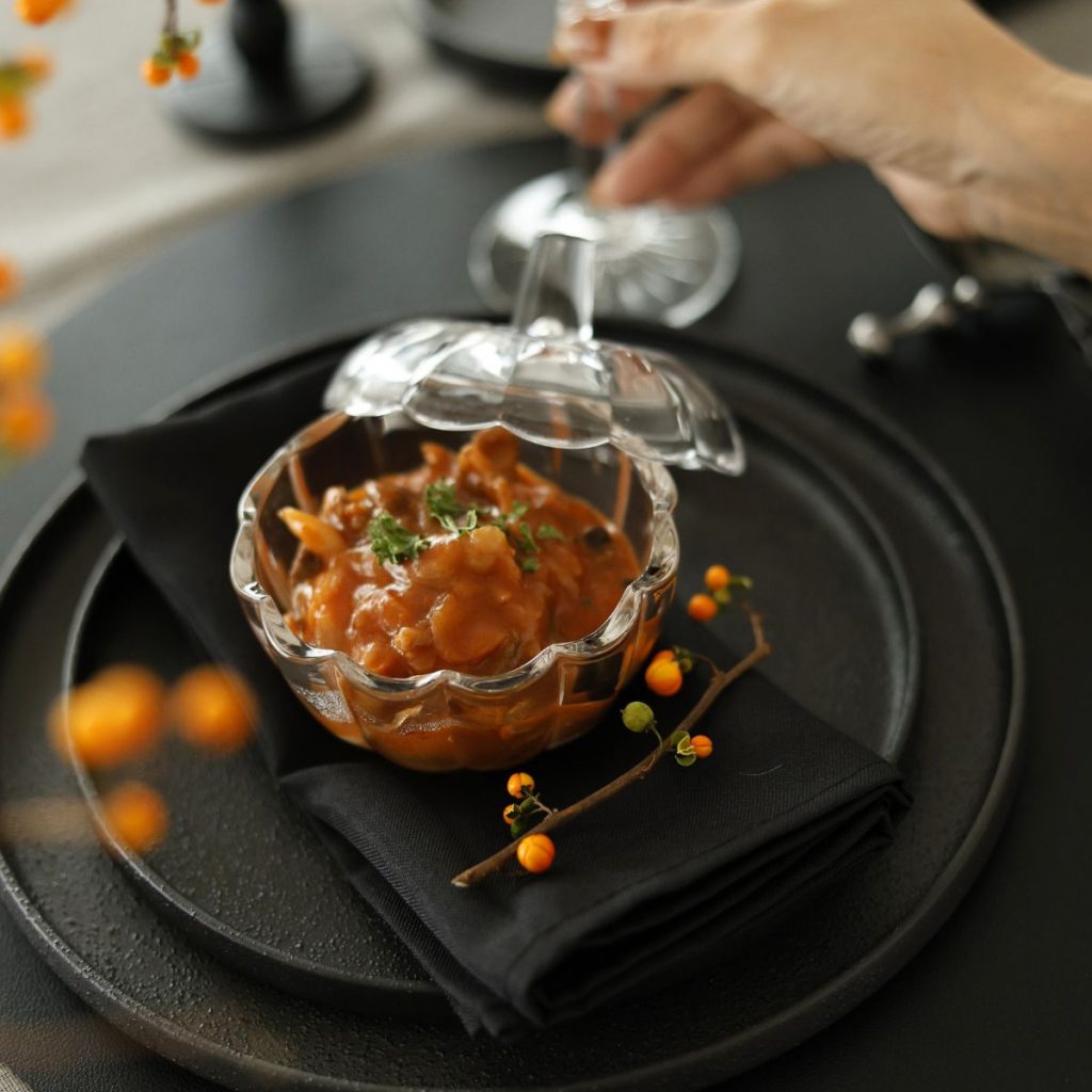 優しいグレージュカラーとガラスのパンプキンの相性がとてもよく
