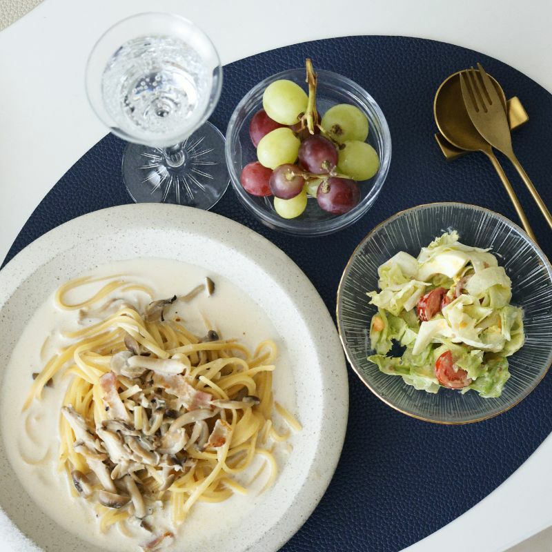 パスタ皿やサラダボウルを合わせると、まるでカフェランチのようにおしゃれで整った印象に。ゴールドカトラリーを添えれば、光が加わり、洗練されたアクセントになります。シンプルな料理ほど、ベースが整うと格が上がる。そんな“大人の余裕”を演出してくれます。