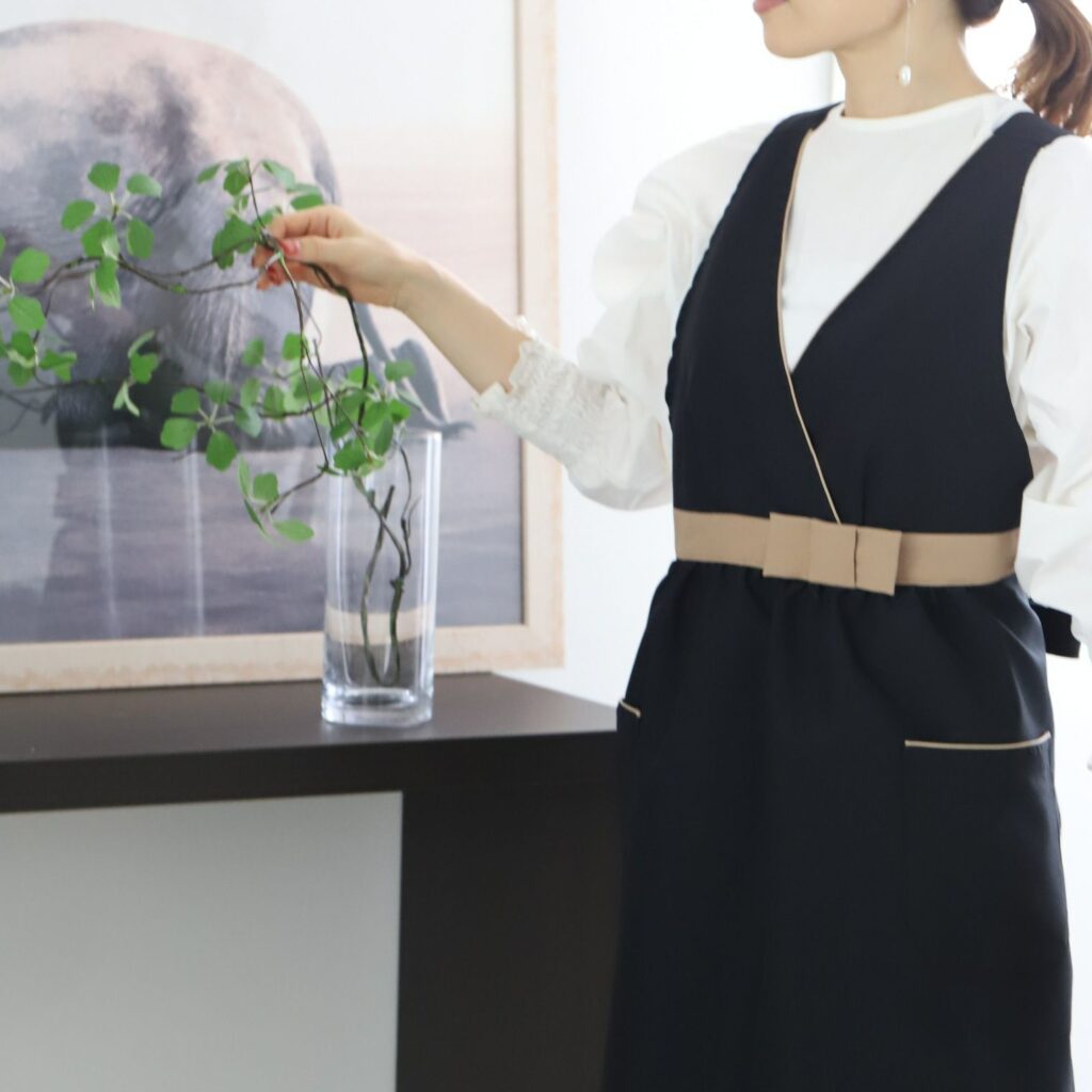 ウエストリボンがアクセント。