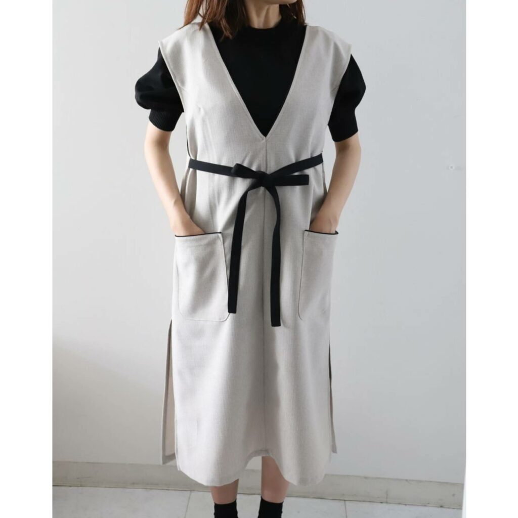 4.おしゃれエプロン ワンピースエプロン エクリュ