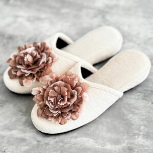 春らしいコサージュのスリッパ。