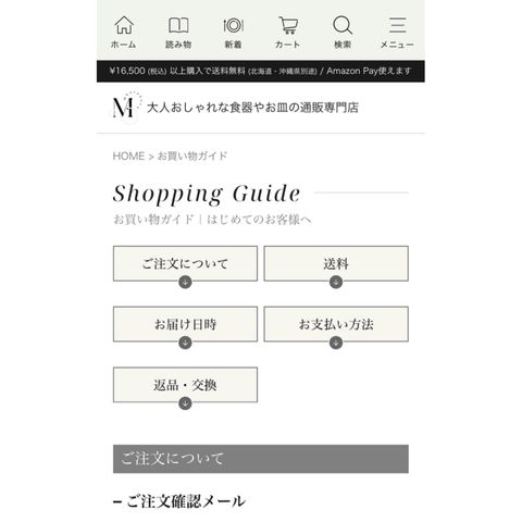 スムーズな発送と、お届け後の返品・交換についてもわかりやすくガイドしていますので、安心してお買い物いただけます。