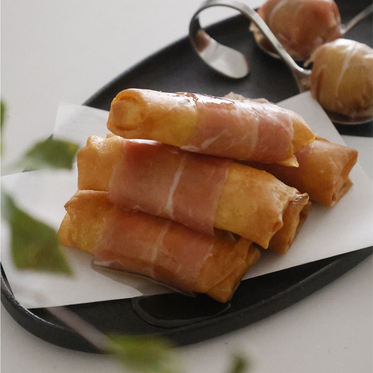 生ハムを巻き、はちみつをかける
