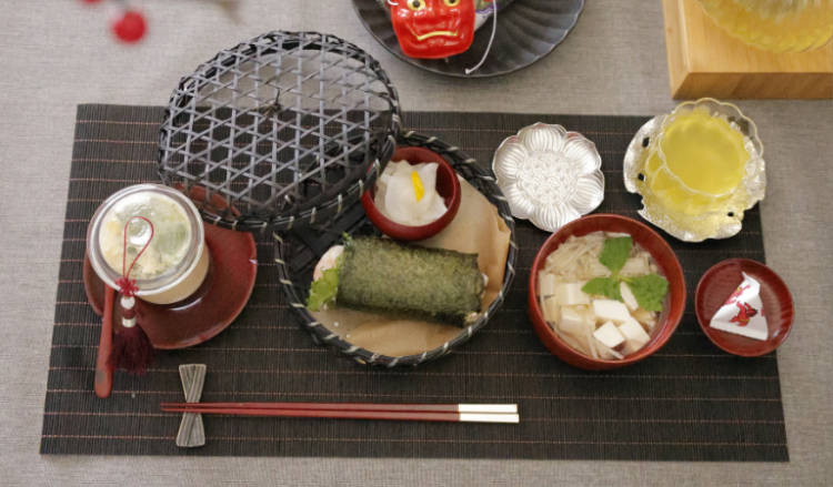 赤と黒のおしゃれな節分のテーブルコーディネート。