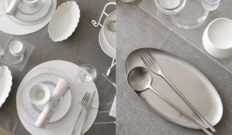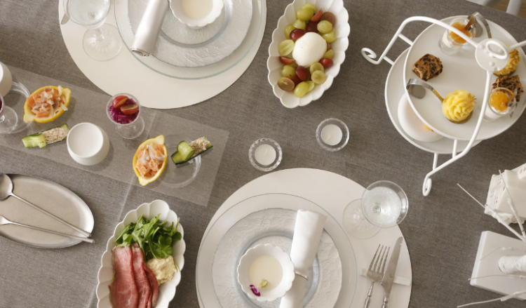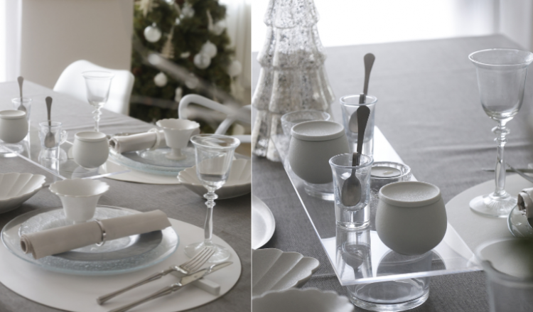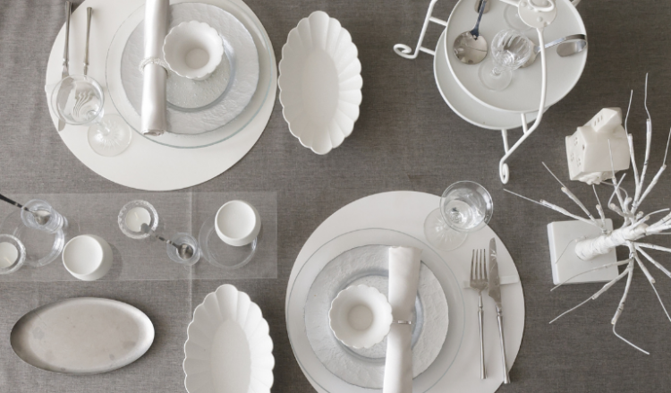 スノーシリーズ×ガラスのテーブルコーディネート。