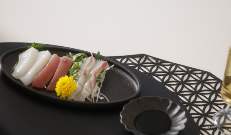 マットな質感が美しいyozoraシリーズの黒皿に、瑞々しいお刺身を添えて。